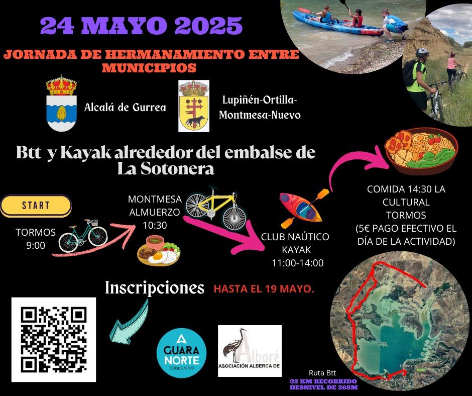 El ayuntamiento de Alcalá de Gurrea junto con el ayuntamiento de Lupiñén-Ortilla y la asociación Alberca de Alboré de Montmesa organiza este día de hermanamiento entre municipios con actividades deportivas Guara Norte y posterior comida en Tormos.