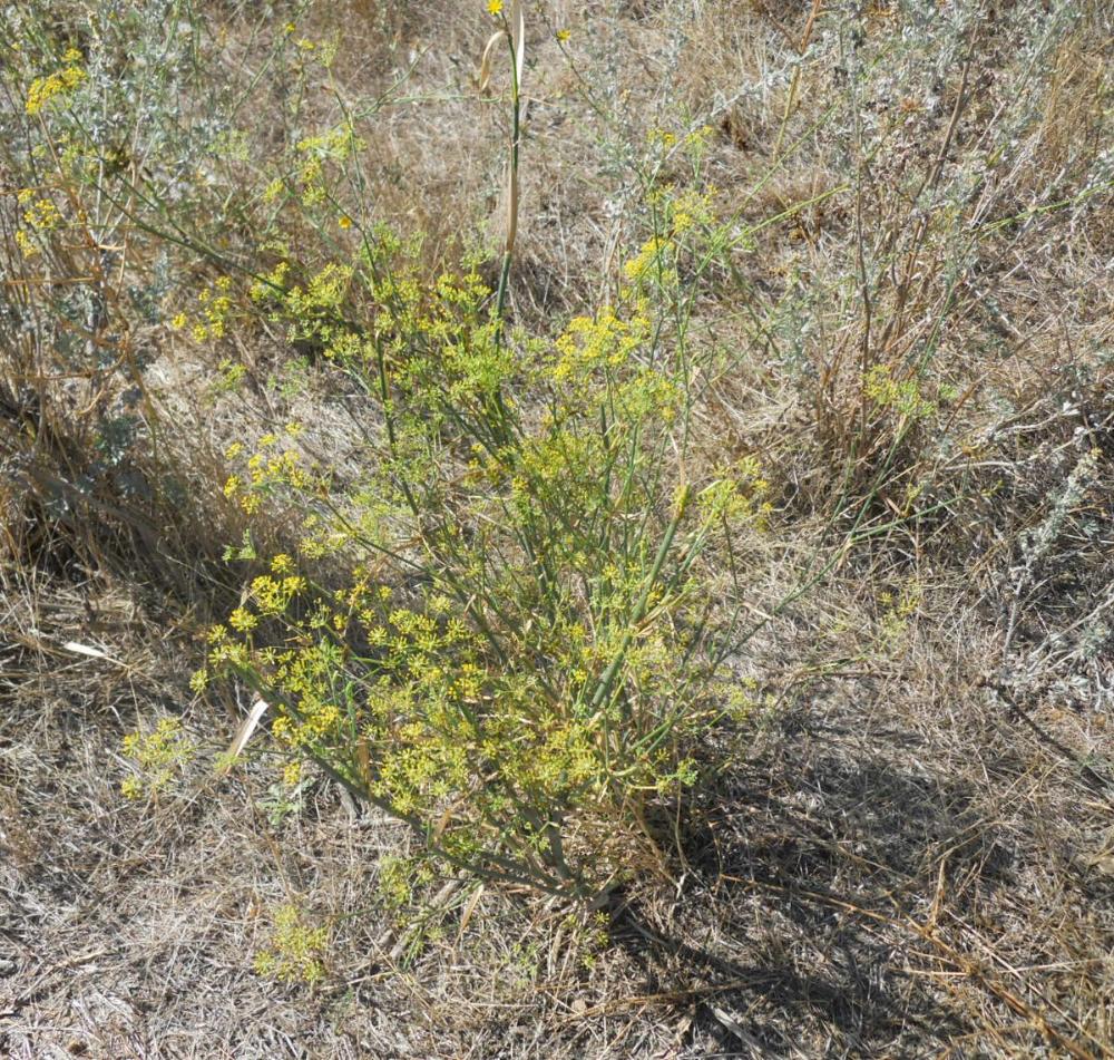 Es una planta herbácea perenne y sumamente aromática. De tallos erectos, ramificados, hasta de 2'5 m. de altura, y hojas de color verde intenso, alargadas y delgadas. Sus flores en umbelas, no tienen sépalos y sus pétalos son amarillos; el fruto ovoide, de 3-6(10) mm posee costillas prominentes.